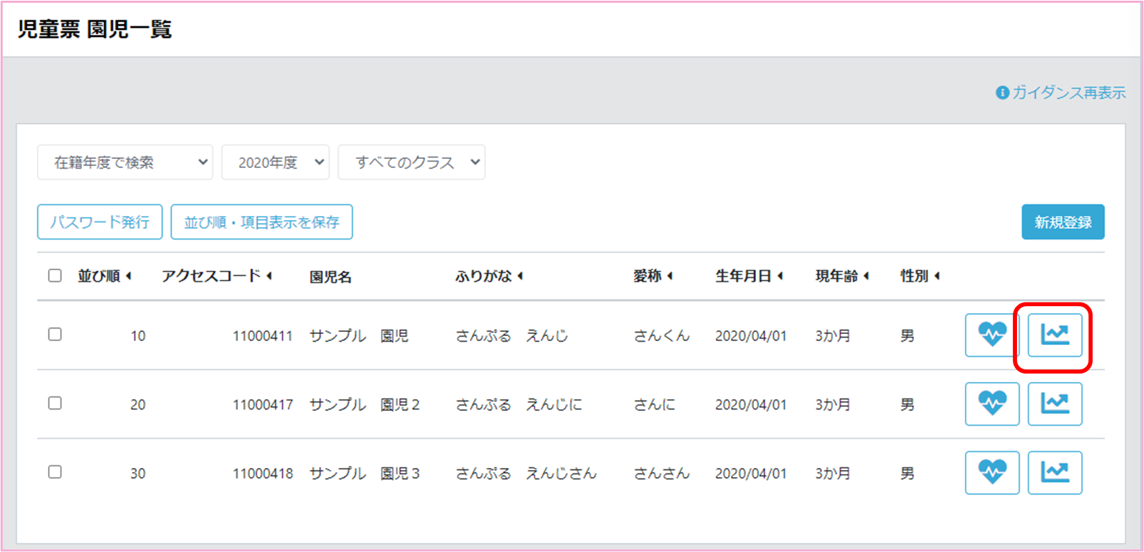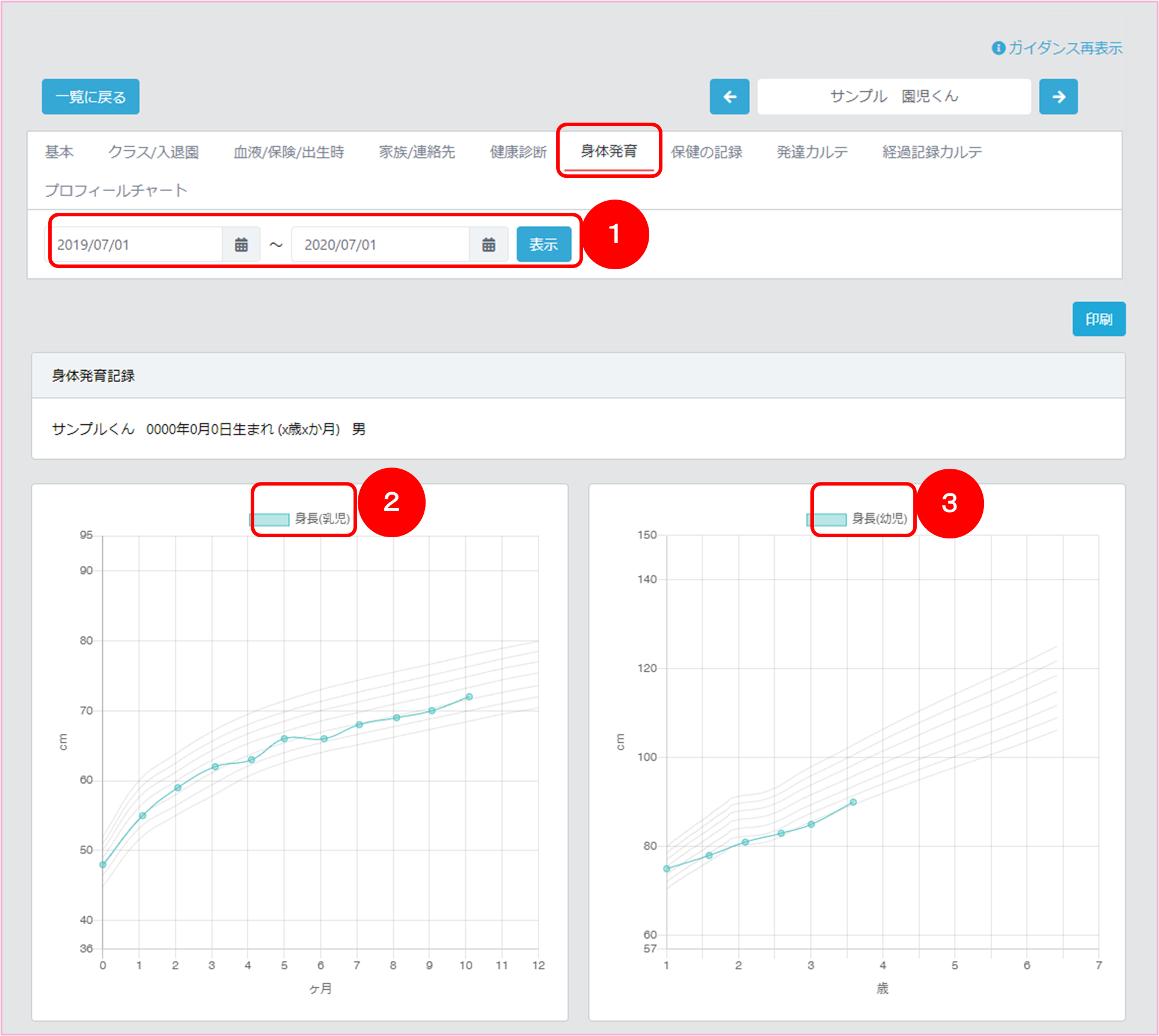園児の身体発育記録を管理する