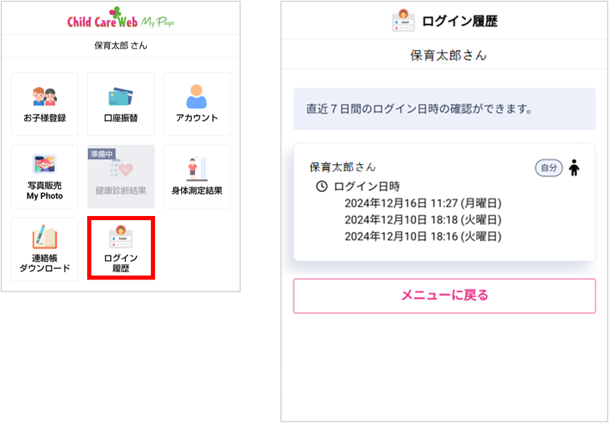1. メニューより[ログイン履歴]のアイコンをタップします。